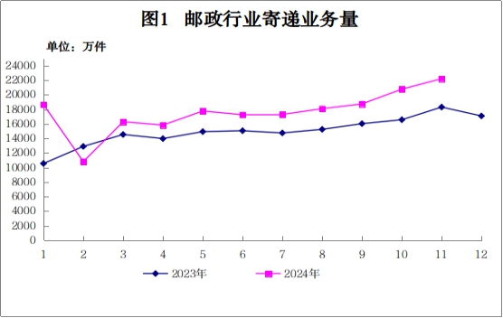 11月份,全省邮政行业寄递业务量完成2.22亿件,同比增长21.36%。其中,博彩app-博彩网址导航量完成1.62亿件,同比增长31.20%。