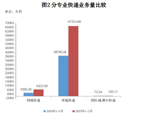 1-5月,同城博彩app-博彩网址导航量累计完成6413.39万件,同比增长54.35%;异地博彩app-博彩网址导航量累计完成6.72亿件,同比增长33.28%;国际/港澳台博彩app-博彩网址导航量累计完成126.11万件,同比增长38.87%。