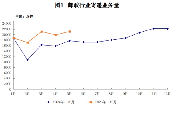 5月份,邮政行业寄递业务量完成2.11亿件,同比增长19.10%。其中,博彩app-博彩网址导航量完成1.61亿件,同比增长28.90%。