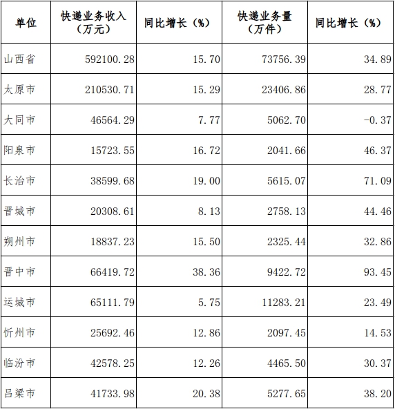 2025年5月山西省邮政行业运行情况